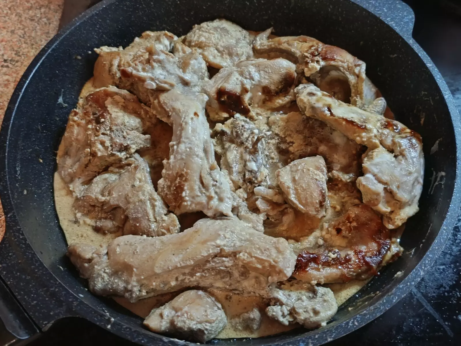 Кролик тушёный в сметане